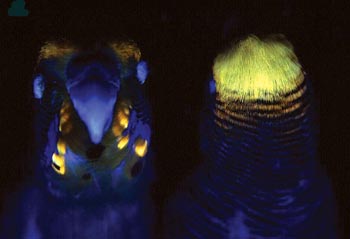 Untersuchungen haben gezeigt das bestimmte Partien der WS unter Ultravioletten-Licht (UV) welches für das menschliche nicht wahrnehmbar ist ähnlich wie Geldscheine Reflektionen zeigen.Besonders deutlich wird das im Gesicht.Hier eine WS bei normalen Licht: